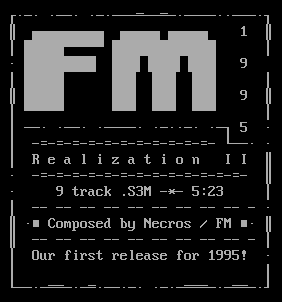 Necros – Realization II Artist: NecrosTitle: Realization IILabel: Five MusiciansRelease Date: 1995/03/23 First FM release ever! Tracklist:01 – Realization II [S3M] [FLAC] [MP3] Additional Files:FILE_ID [DIZ] [PNG]FM [NFO] [PNG] Original FLAC MP3 *FLAC & MP3 zips also include the original versions. ← Back To Netlabel